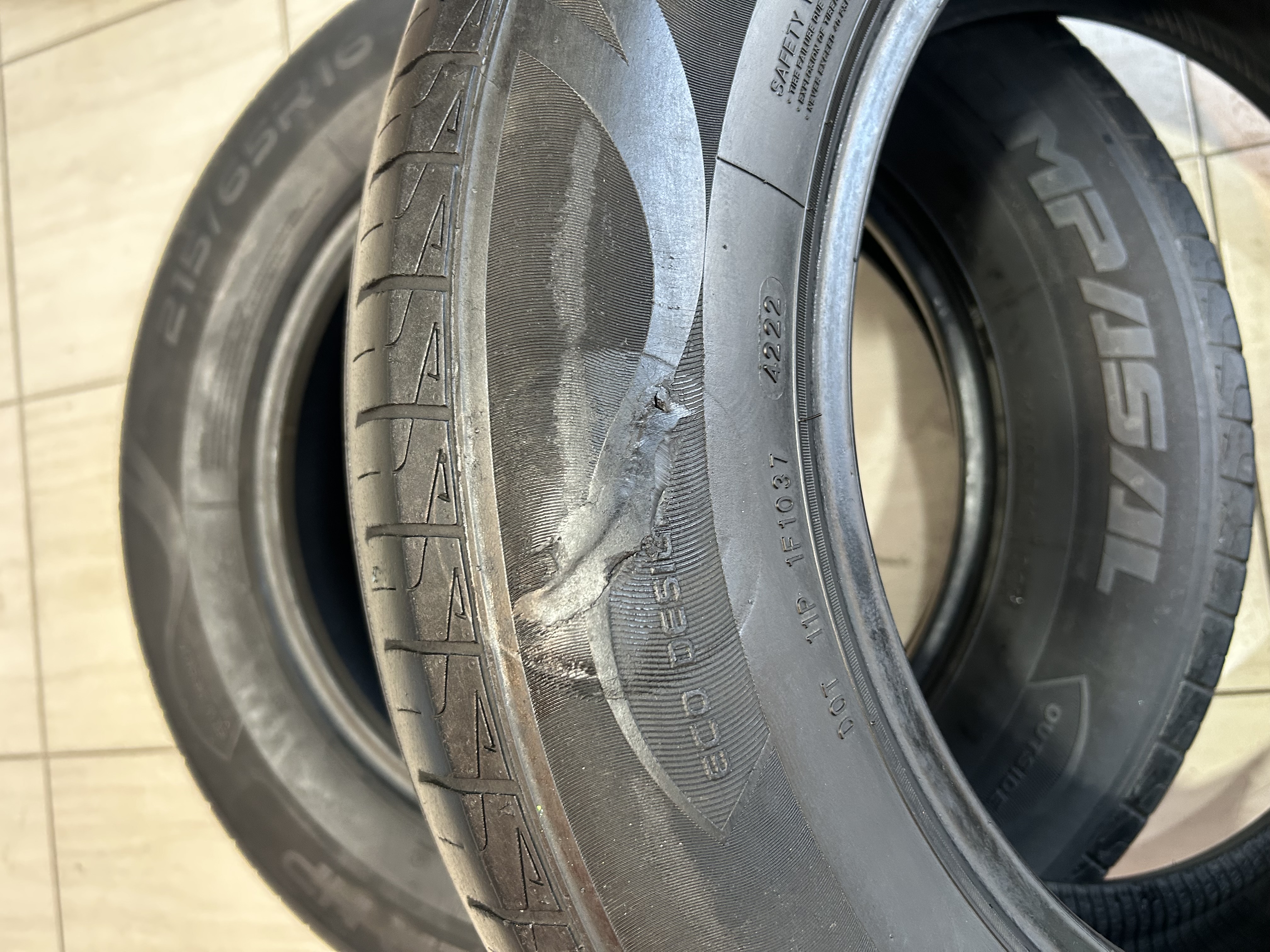 لاستیک 215/65/16 کامپاسال چین کارکرده در حد 50% آجدار (وصله ظاهری بقل دارد)